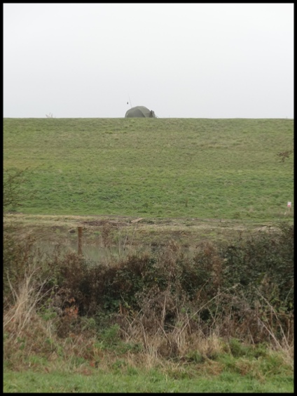 Upstream from Shellow Bridge, where I ended the previous section of the walk, the river passes through Birds Green Fishery. It was a rather cool and cloudy day, but there were still a few enthusiasts huddled underneath their umbrellas and tents by the side of the lakes.